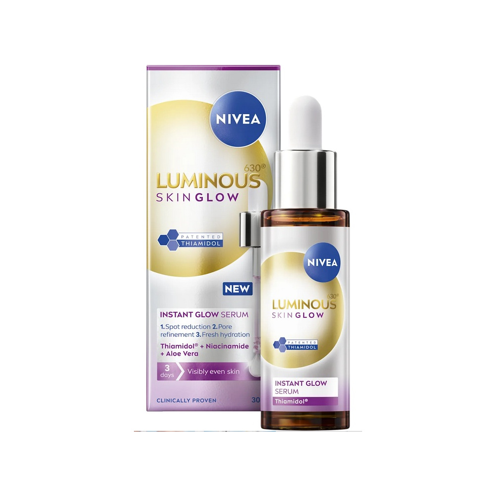 Nivea Luminous Skin Glow je lehké pleťové sérum, které intenzivně rozjasňuje pokožku a přispívá ke sjednocování tónu pleti.