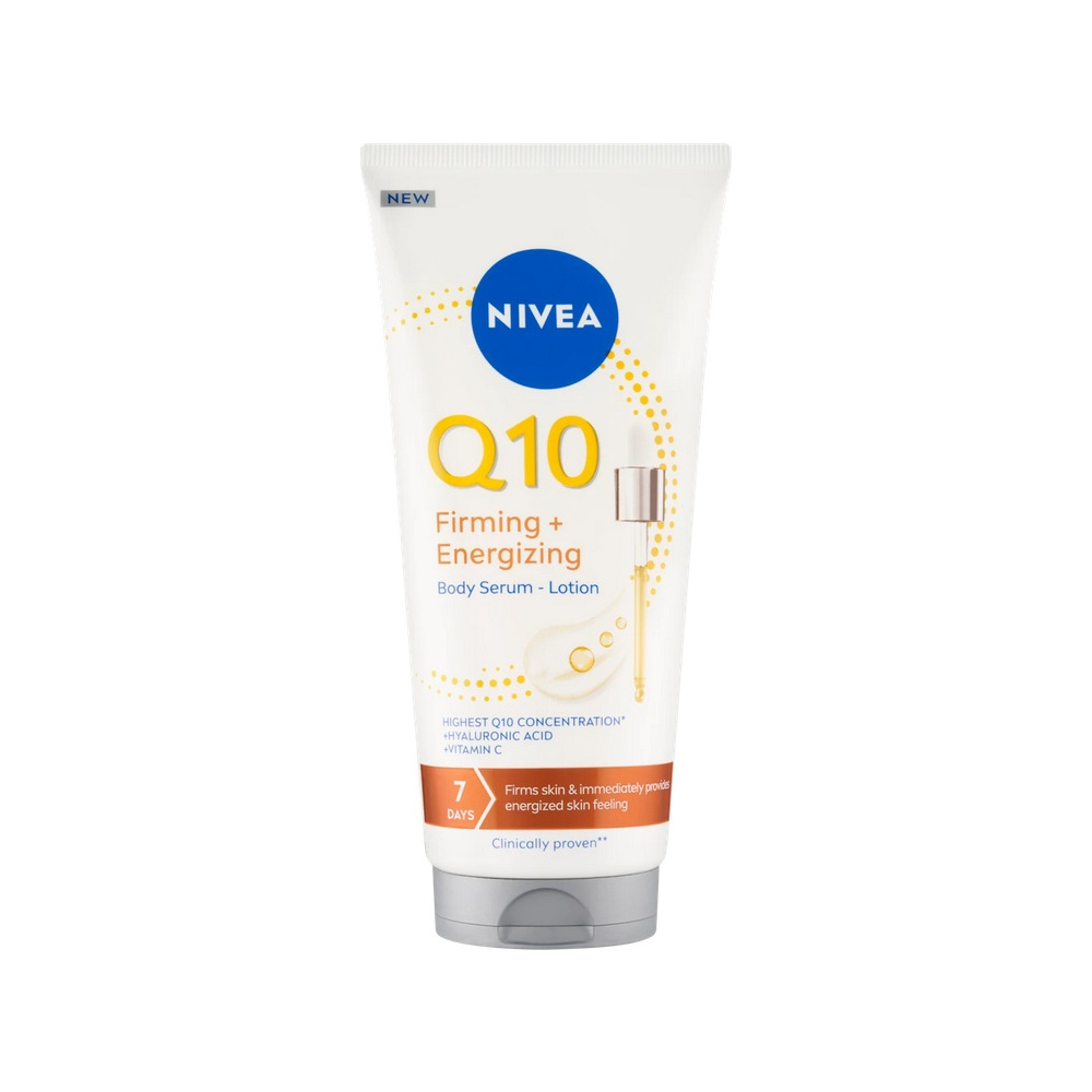 NIVEA Q10 Zpevňující energizující tělové sérum (200 ml) je inovativní péče, která kombinuje účinnost séra s výživnými vlastnostmi tělového mléka.