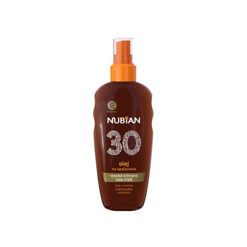 Nubian OF30 je suchý olej na opalování s ochranným faktorem SPF 30, který poskytuje střední ochranu pokožky před slunečním zářením.
