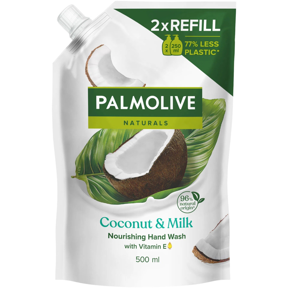 Palmolive Naturals Coconut & Milk tekuté mýdlo náhradní náplň, obohacené o vitamín E, zanechává vaše ruky jemné a vyživené. Krásně voňavá náplň na umývání rukou potěší vaše smysly.
