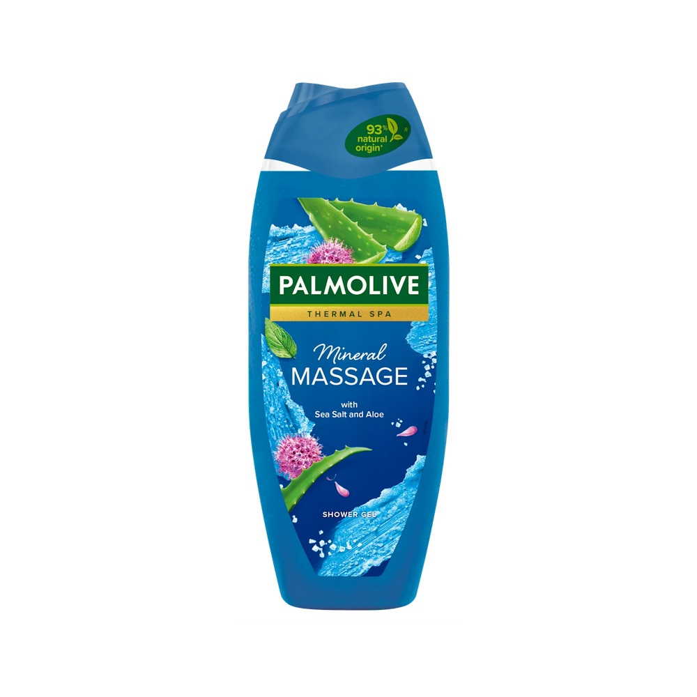 Palmolive Thermal Spa Mineral Massage s mořskou solí, aloe a 100% přírodními esenciálními oleji promění každé sprchování v voňavý lázeňský rituál plný luxusního hýčkání.