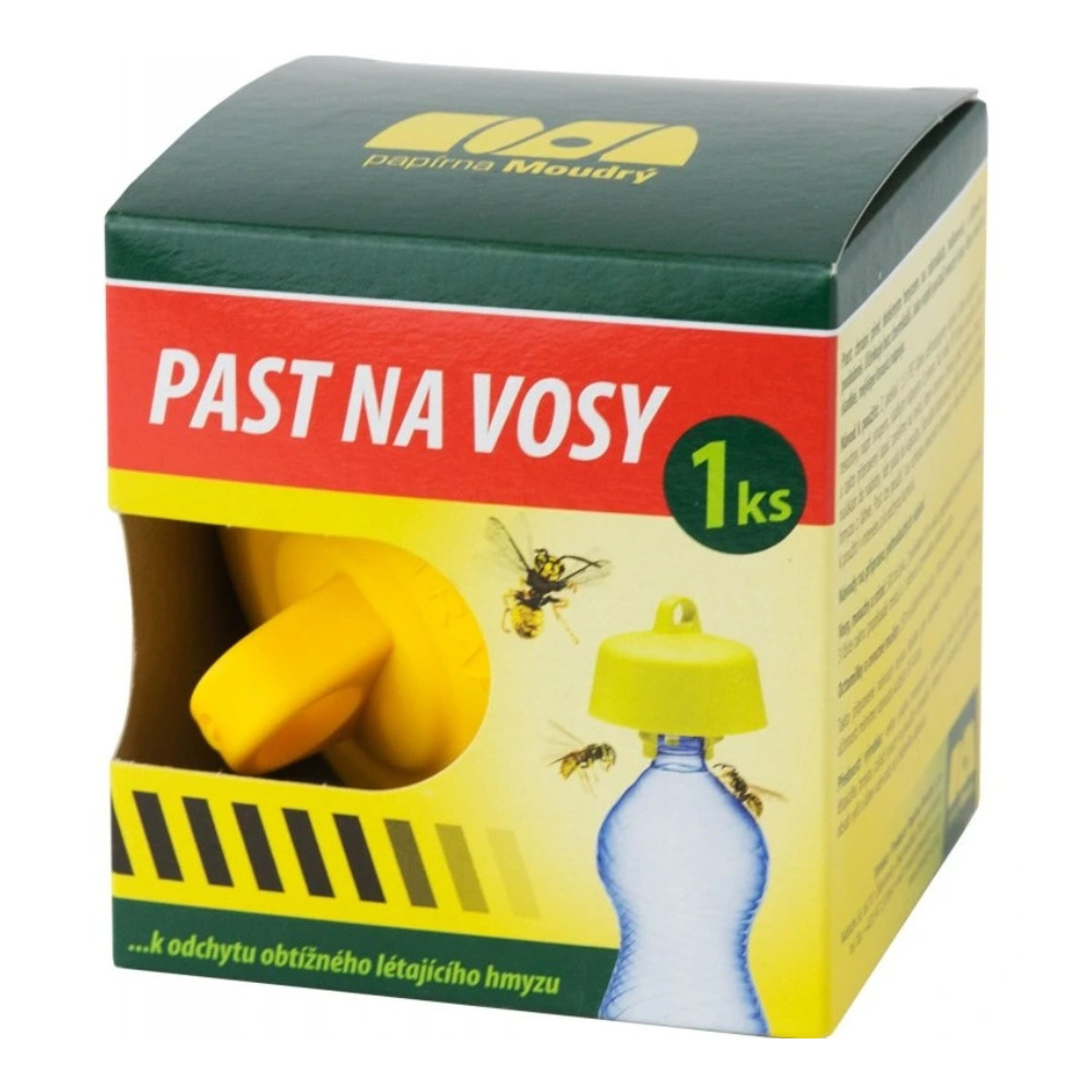 Praktická a jednoduchá past na vosy, která se skládá z plastového držáku, určeného k nasazení na běžnou PET láhev.