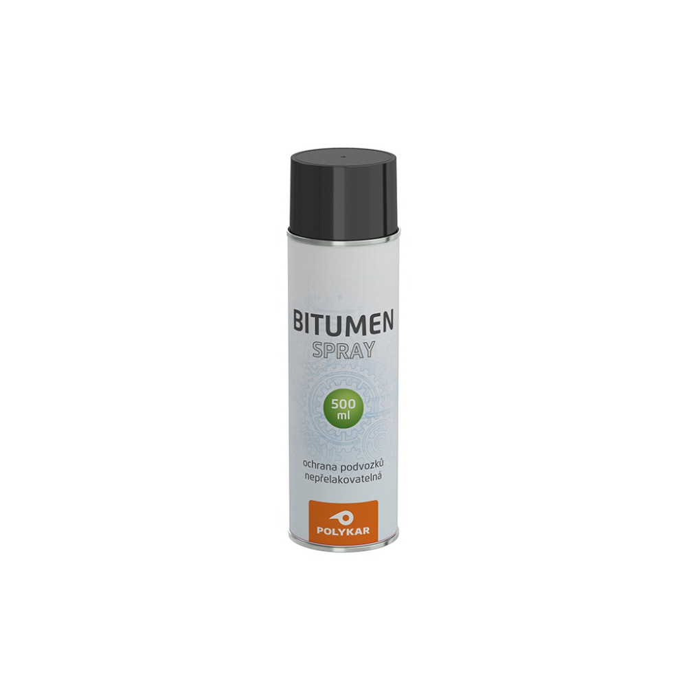 Polykar Bitumen sprej, prostředek na ochranu podvozků aut, návěsů a kovových výrobků, vyroben na bázi kaučuku a asfaltu.