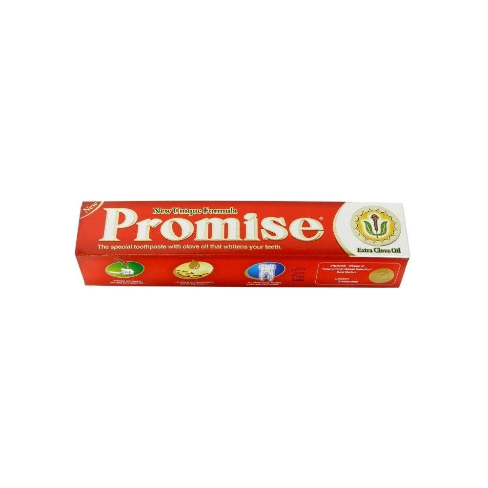 Zubní pasta Promise s hřebíčkovým olejem, speciální jemnozrnný prášek má bělící účinky a odstraňuje zubní povlak. Hřebíčkový olej vyniká svými hojivými a protizánětlivými účinky, je určená pro každodenní komplexní ochranu celé dutiny ústní.