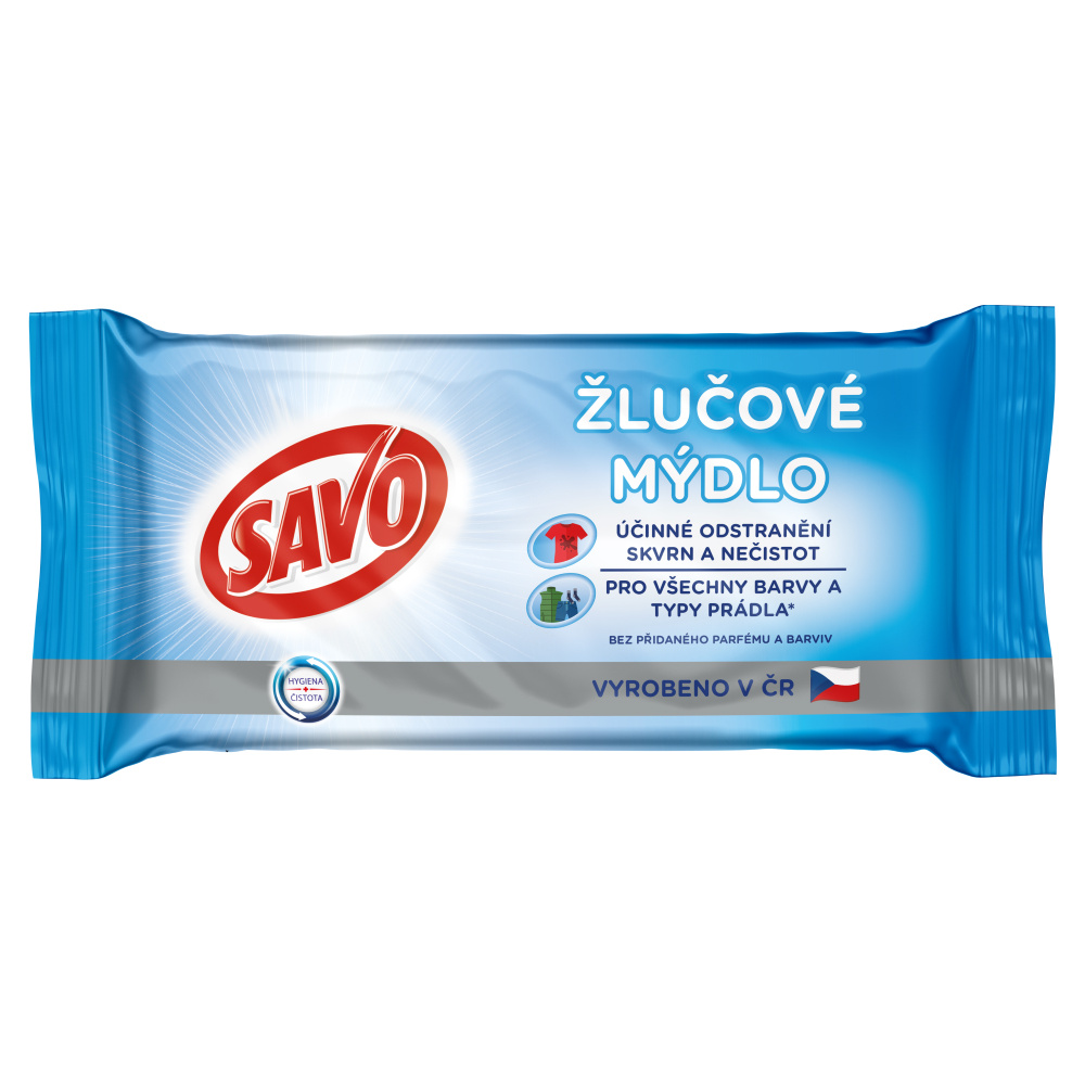 Savo Žlučové mýdlo odstraňuje díky svému účinnému složení různé typy odolných skvrn ze všech textilií, čalounění a koberců.