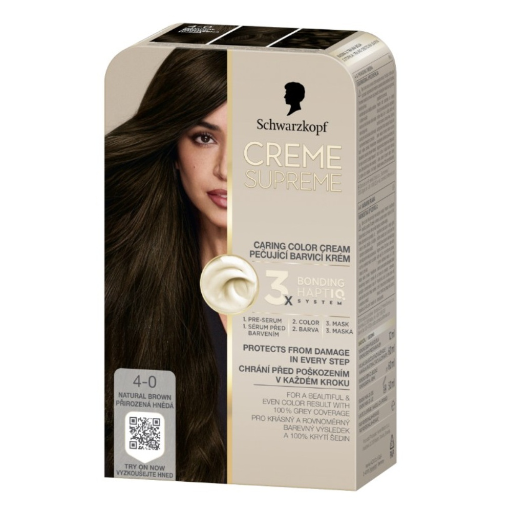 Schwarzkopf Creme Supreme barva na vlasy 4-0 přirozená hnědá 60 ml