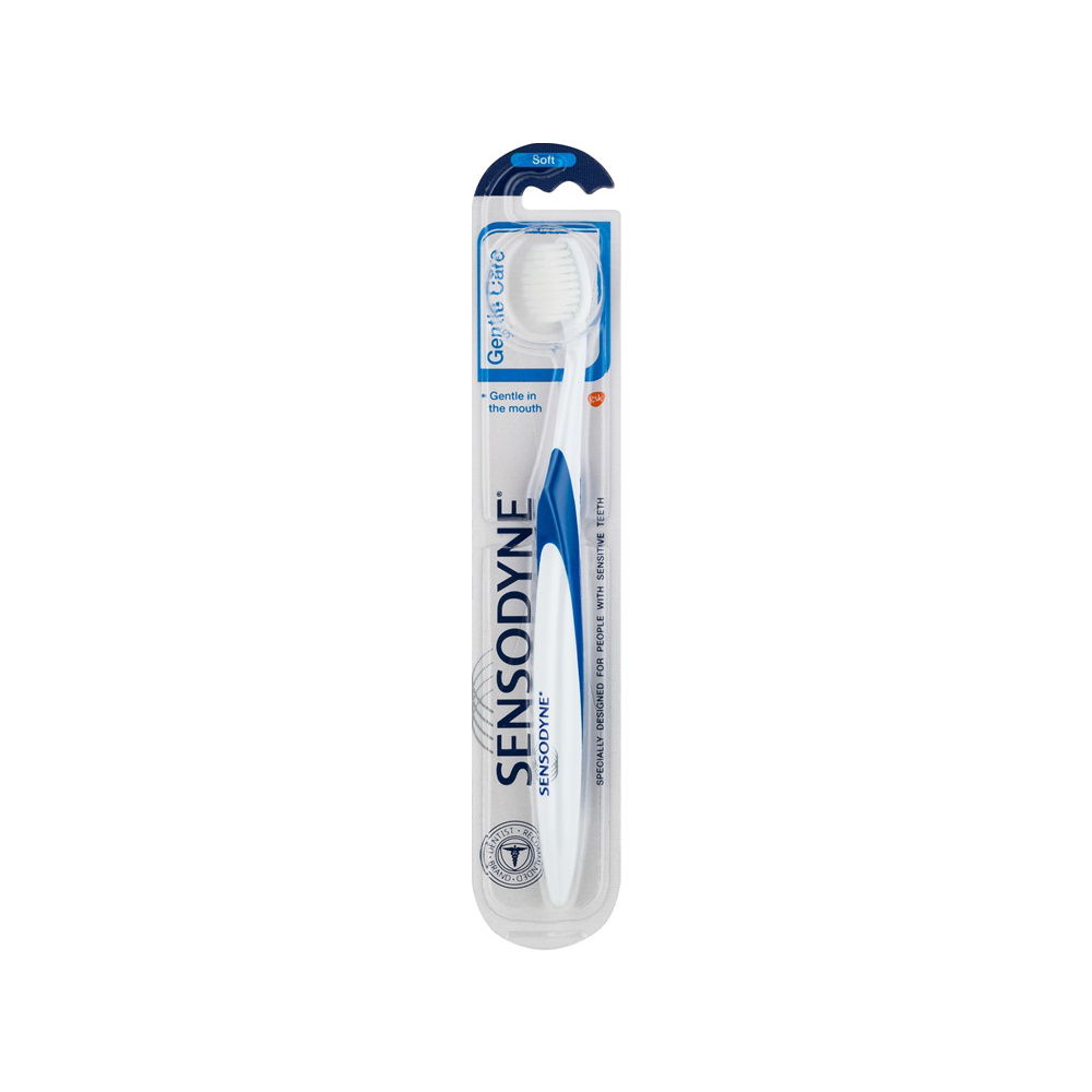Zubní kartáček Sensodyne Gentle Care Soft byl speciálně vyvinut pro lidi s citlivými zuby. Ultra jemné, zužující se štětiny jsou navrhnuty pro šetrné čištění zubů a dásní.
