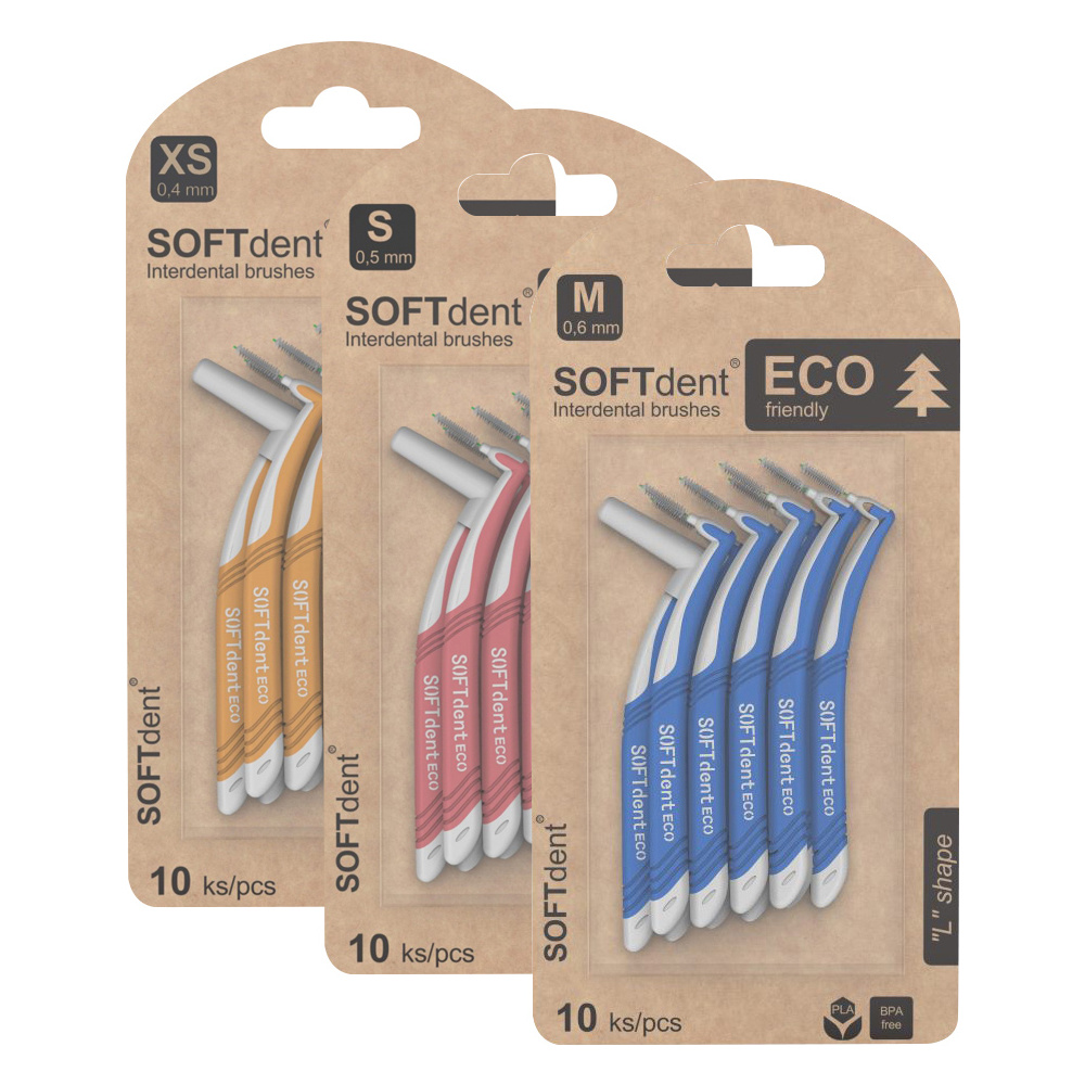 Mezizubní kartáčky SOFTdent ECO mají obal a rukojeť vyrobené z lépe