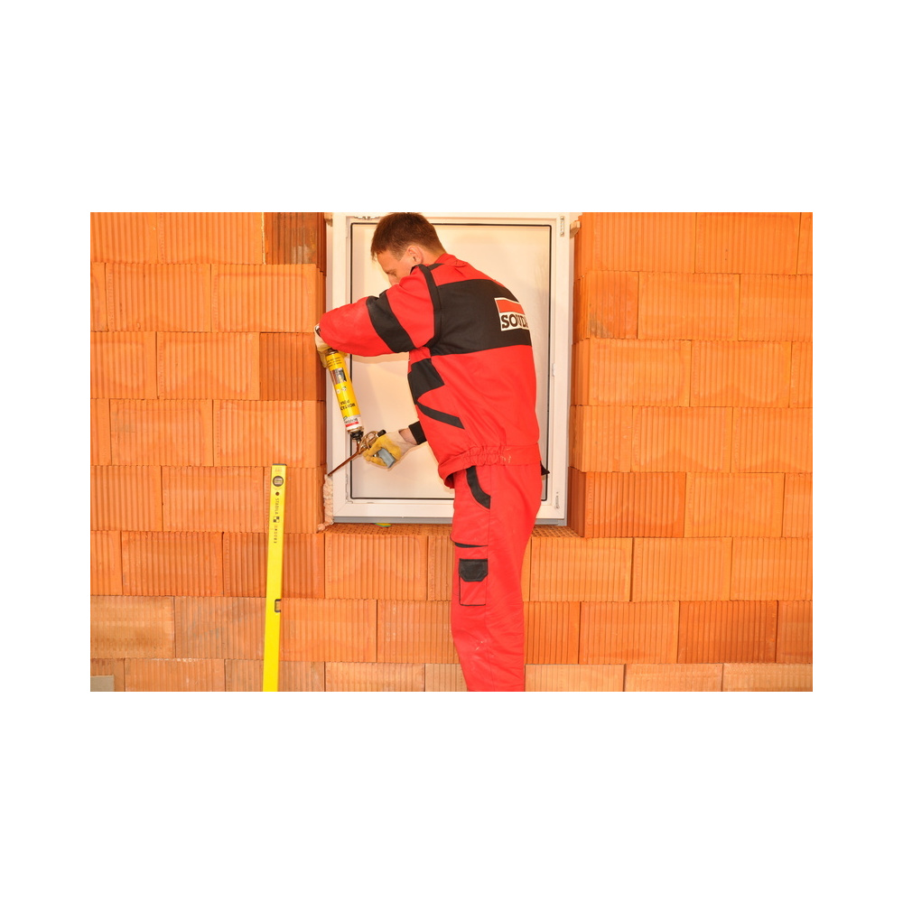 Pro montáž rámů oken a dveří, vyplňování dutin, tmelení a vyplňování otvorů v konstrukci střech, tvorba zvukově izolační vrstvy, montáž a tmelení rámů oken a dveří, spojování izolačních materiálů a konstrukce střech, nanášení zvukově izolační vrstvy