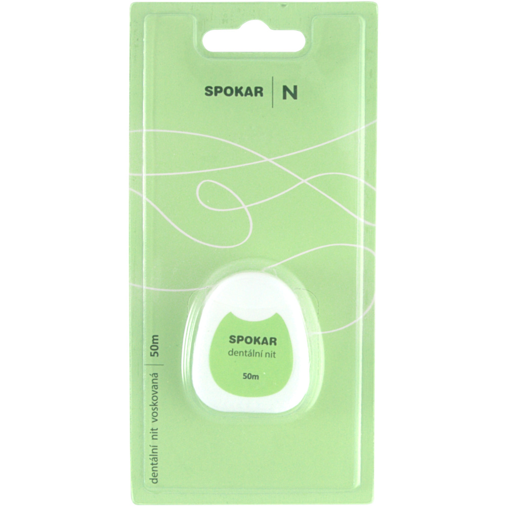 Spokar dentální nit voskovaná pro čištění mezizubních prostorů. Zabraňuje vzniku zubního povlaku, který způsobuje zaněty a onemocnění dásní. Délka 50 metrů. Dentální nit má voskovaný povrch.