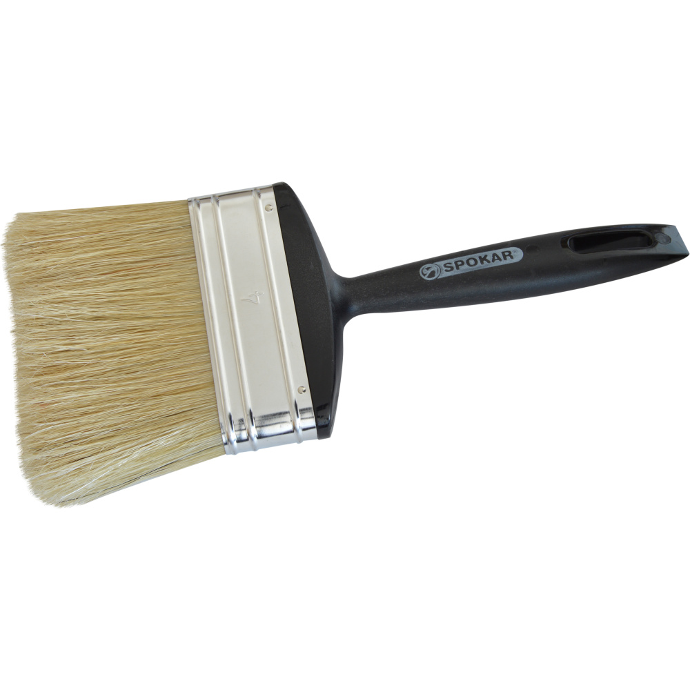 Pro všechny druhy nátěrových hmot. Plastové držadlo pootočené vůči hlavě štětce pro lepší uchopení, zakončení držadla ve formě špachtle.