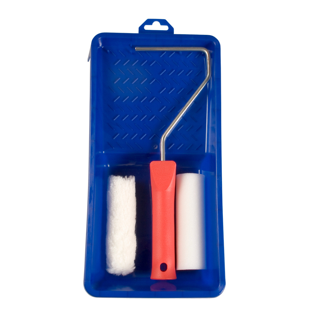 Sada válečků Moltopren o šířce 100 mm a Perlon o šířce 100 mm s držákem válečku 6 mm. Součástí sady je i vanička na barvu.