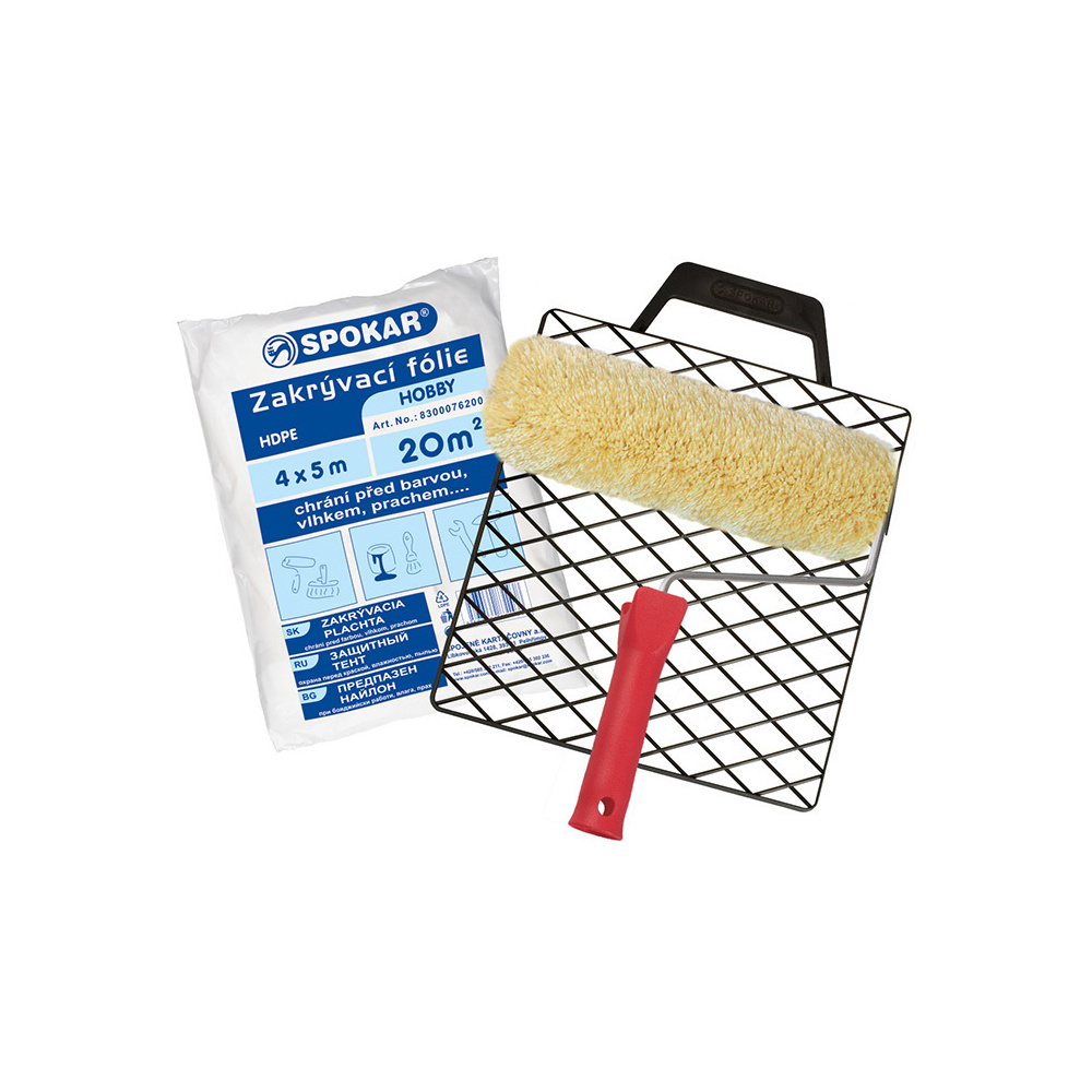 Spokar Plyš žlutozelený váleček na malování, 250 mm + držák, folie, mřížka