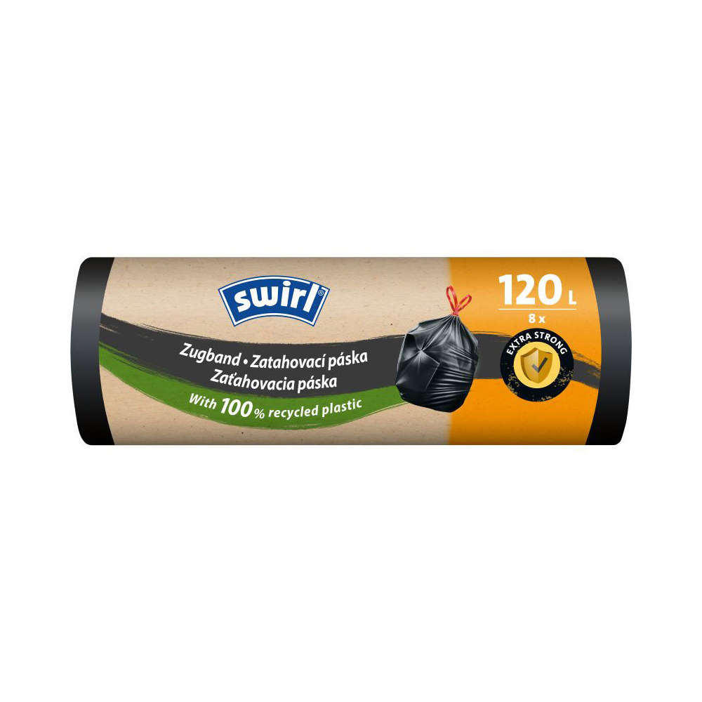 Swirl extra silné zatahovací pytle na odpad 120 l, 70 × 100 cm, 33 µ, 8 ks