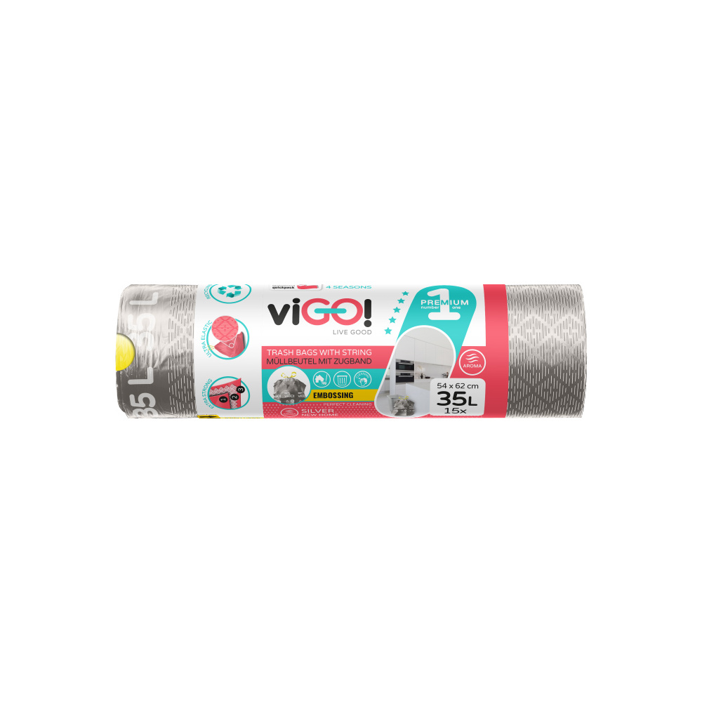 viGO! Premium pytle na odpad zatahovací, 26 µ, 54 × 62 cm, 35 l, 15 ks