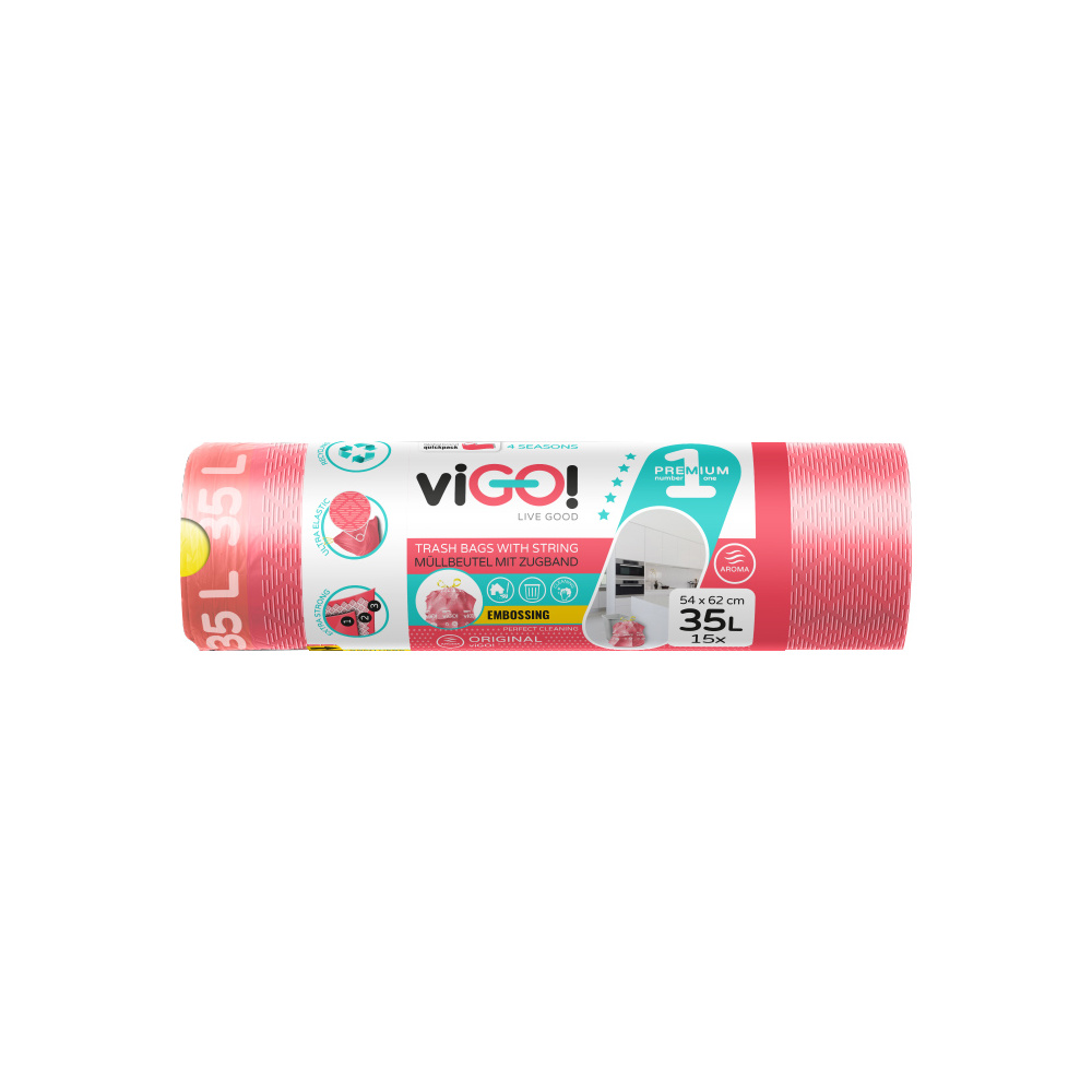 viGO! Premium pytle na odpad zatahovací, parfémované, 26 µ, 54 × 62 cm, 35 l, 15 ks