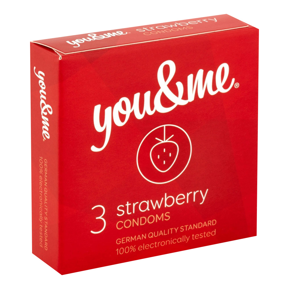 You & Me Strawberry průhledný lubrikovaný kondom s vůní jahod, 3 ks